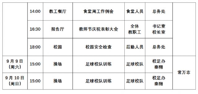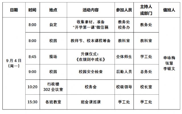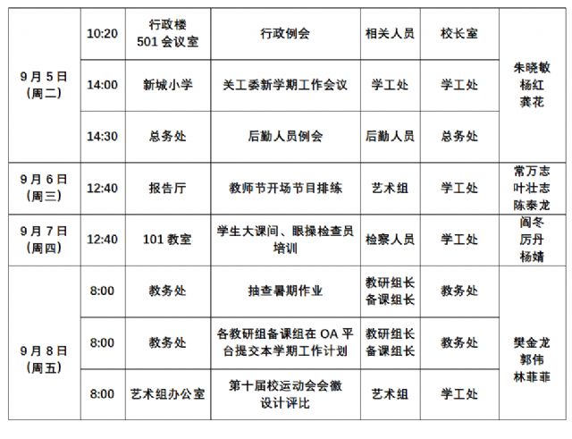 2023-2024学年第一学期第一周工作安排