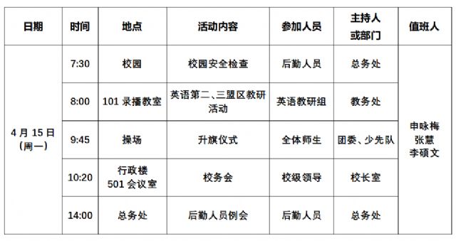 2023-2024学年第二学期第九周工作安排