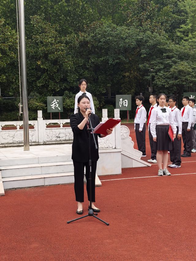 大家好!我是初三四班的王嘉熙,很荣幸能作为护旗手站在这里。当红领巾第一次飘扬在胸前,我就知道,那是红旗的一角,是前辈用热血染就的信仰。如今我们迈入初三,这份红色传承,更该变成脚踏实地的青春担当。