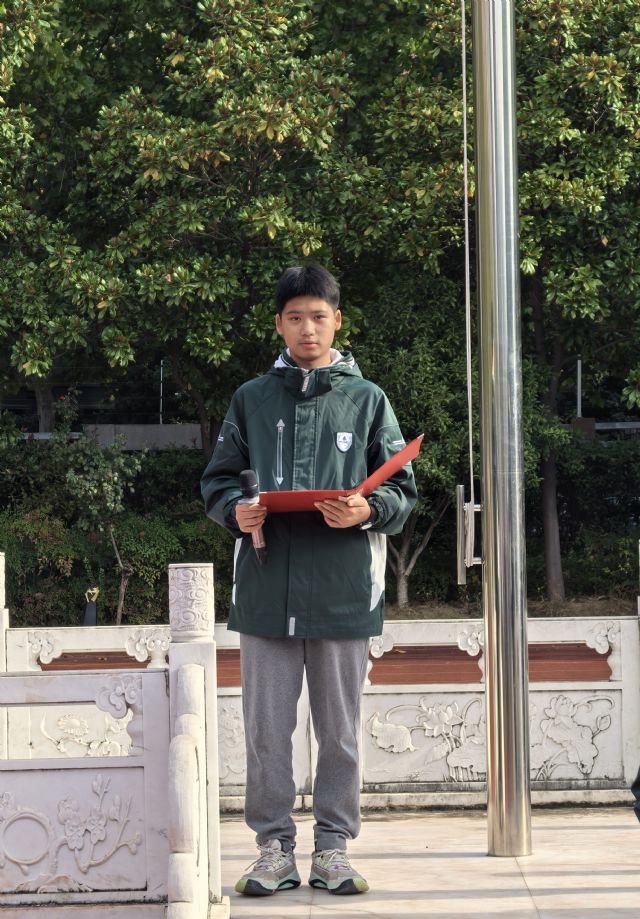 二、护旗手初三(7)班张徐伟宸同学和初三(7)班花瑾萱同学发言